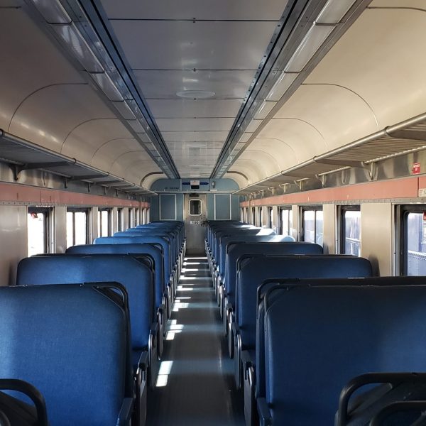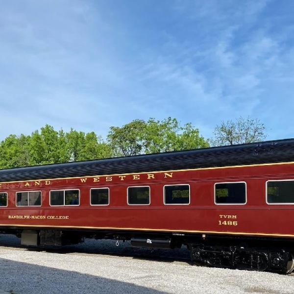 The 1486, also named “Randolph-Macon College,” was originally built in 1949 by the Budd Company for the Norfolk and Western Railway as a S1 class, lightweight, 10-6 sleeping car. As a 10-6 sleeper, it had 10 roomettes (single passenger rooms) and 6 double-bedrooms (two passenger rooms). No longer a sleeping car, it was eventually converted to a commuter car. It also saw service with the Pennsylvania Railroad and the Maryland Area Regional Commuter. TVRM acquired the car from the Western Maryland Scenic Railway in 2019.