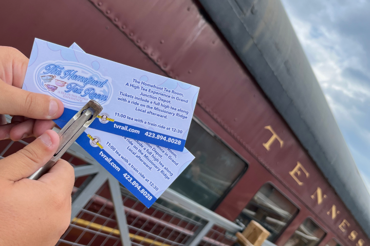 high tea before boarding the Missionary Ridge Local, creating a unique blend of fine dining and classic rail travel.Enjoy seasonal savory selections, sweet treats, and freshly baked scones, all prepared to highlight the flavors of the season — the perfect way to spend an afternoon in Chattanooga.